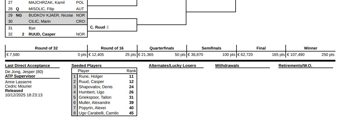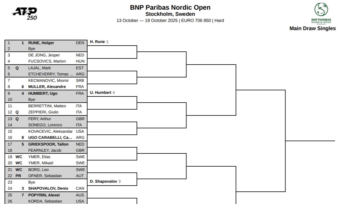【2025年最新】BNPパリバ・ノルディック・オープン(旧:ストックホルム・オープン) のドロー表・放送日程