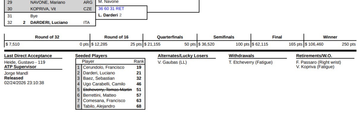 チリ・オープンで、優勝者・準優勝者が獲得できるポイントと賞金をご紹介します。