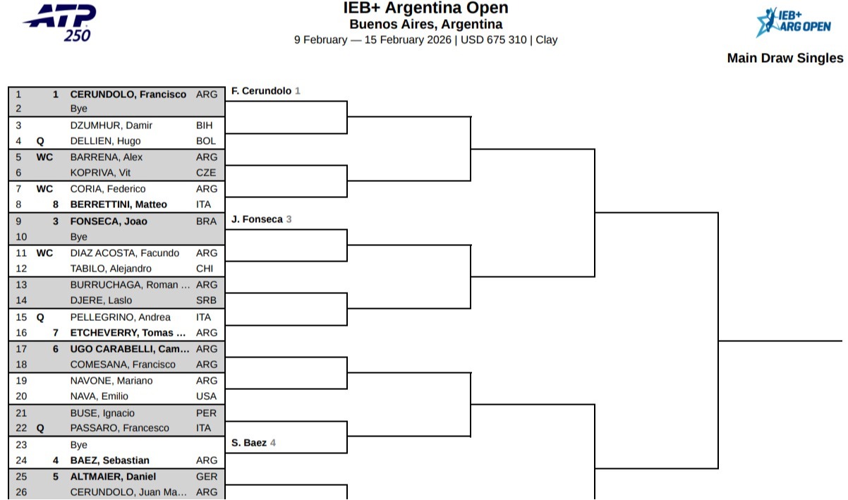 アルゼンチン・オープン2026のドロー表