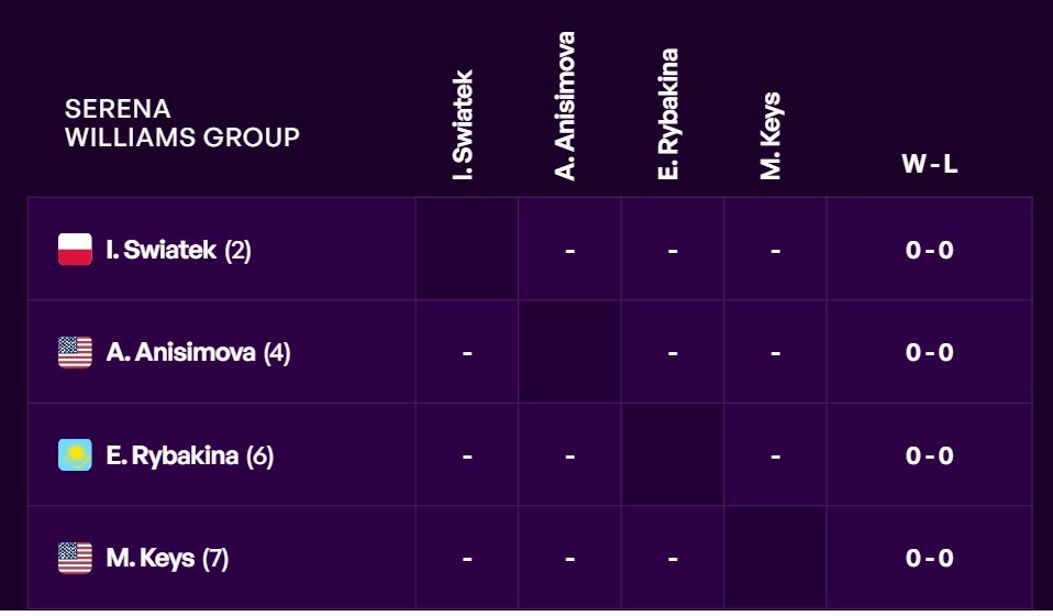 まず、出場選手はシード権の順番によって半分に分かれます。4人ずつの2グループとなり、その中で総当たりの1次リーグ(「ラウンドロビン」と呼ぶ)が行われます。4人が総当たりして勝敗数を競い、上位2人が準決勝進出。同じ勝利数だった場合は、直接対決した結果や獲得セット数など細かく条件がついて準決勝進出者が決められます。