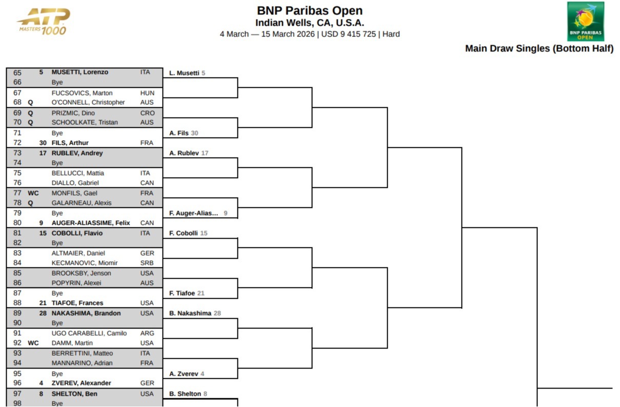 【2026年最新】BNPパリバオープン(インディアンウェルズ)のドロー表・放送日程