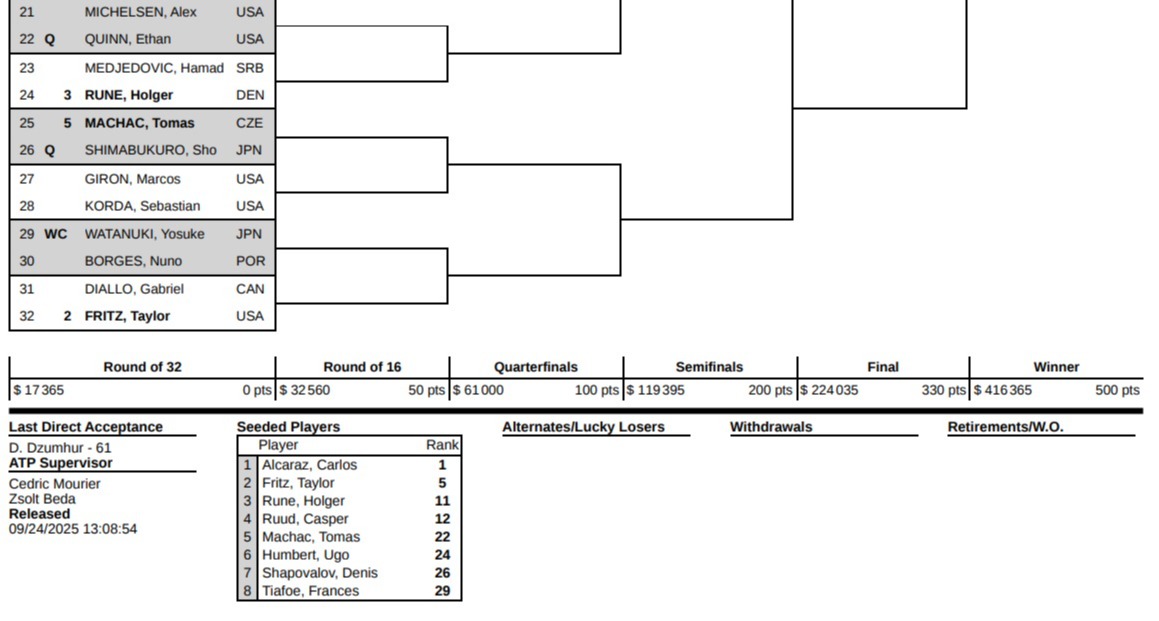 ATPツアーの中で、木下グループ・ジャパンオープンは、ATP500大会に含まれます。優勝者には500ポイント、準優勝者には330ポイントが付与されます。また、2025年の大会賞金は、優勝者へ416,365ドル、準優勝者へ224,035ドルが予定されています。