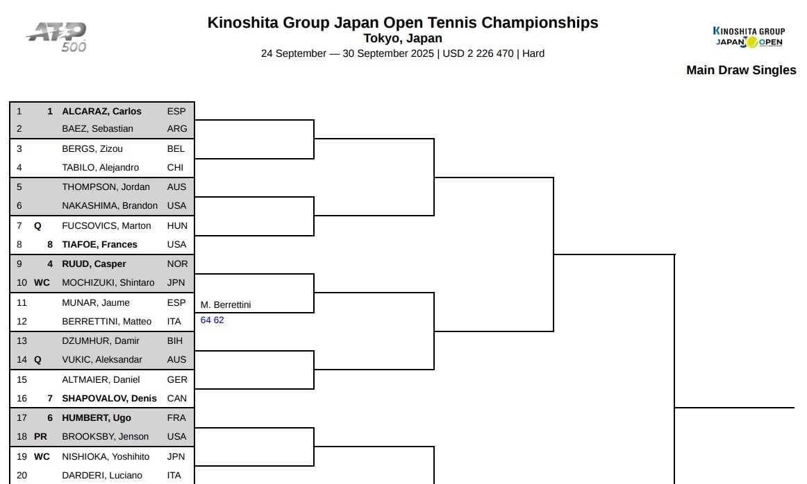 【2025年最新】木下グループ・ジャパンオープン(旧・楽天ジャパンオープン)のドロー表・放送日程