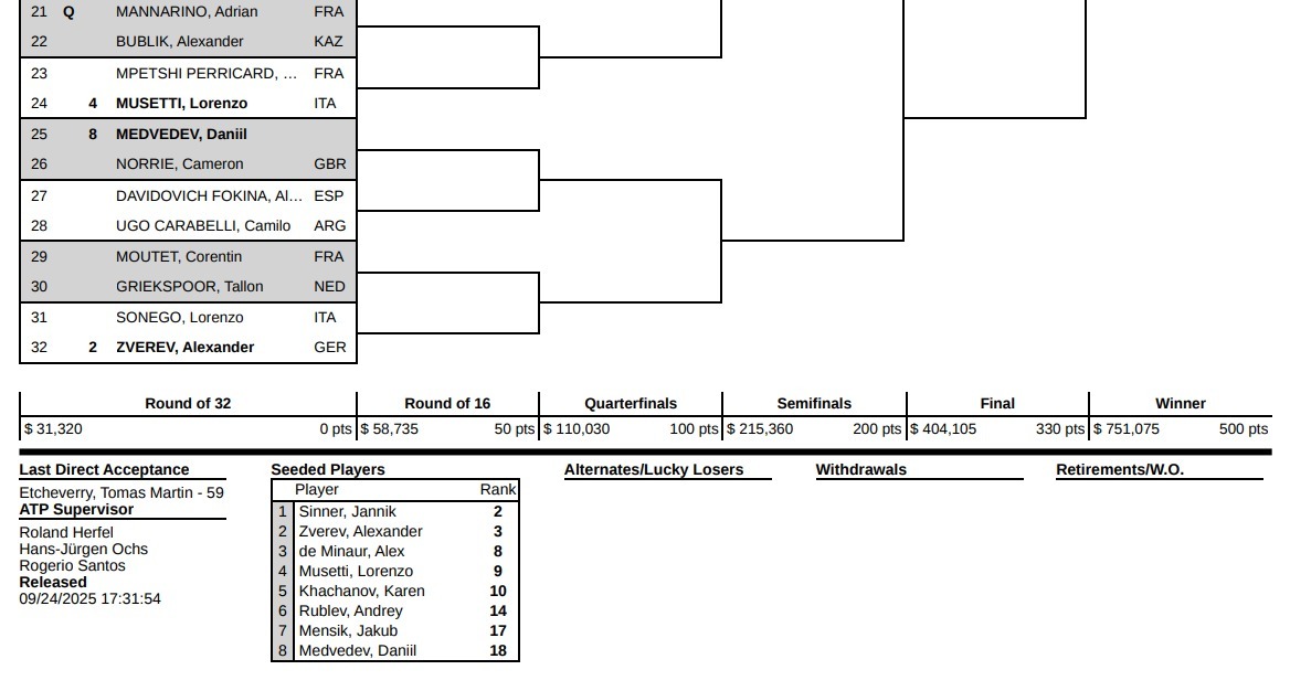 ドロー数 | ATP:シングルス32ドロー、ダブルス16ドロー WTA:シングルス96ドロー、ダブルス32ドロー |