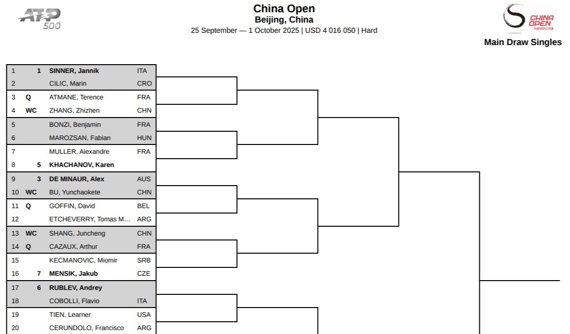 【2025年最新】テニスのチャイナ・オープンのドロー表・放送日程