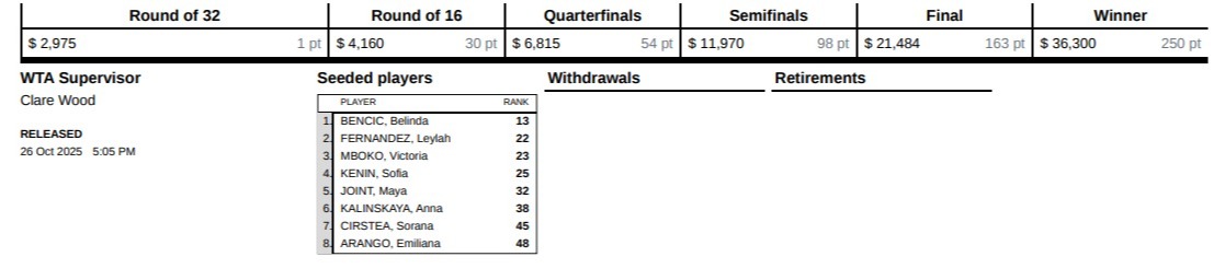 | 1回戦 | 10/27(月)15:00~ | --- | WTA TV |