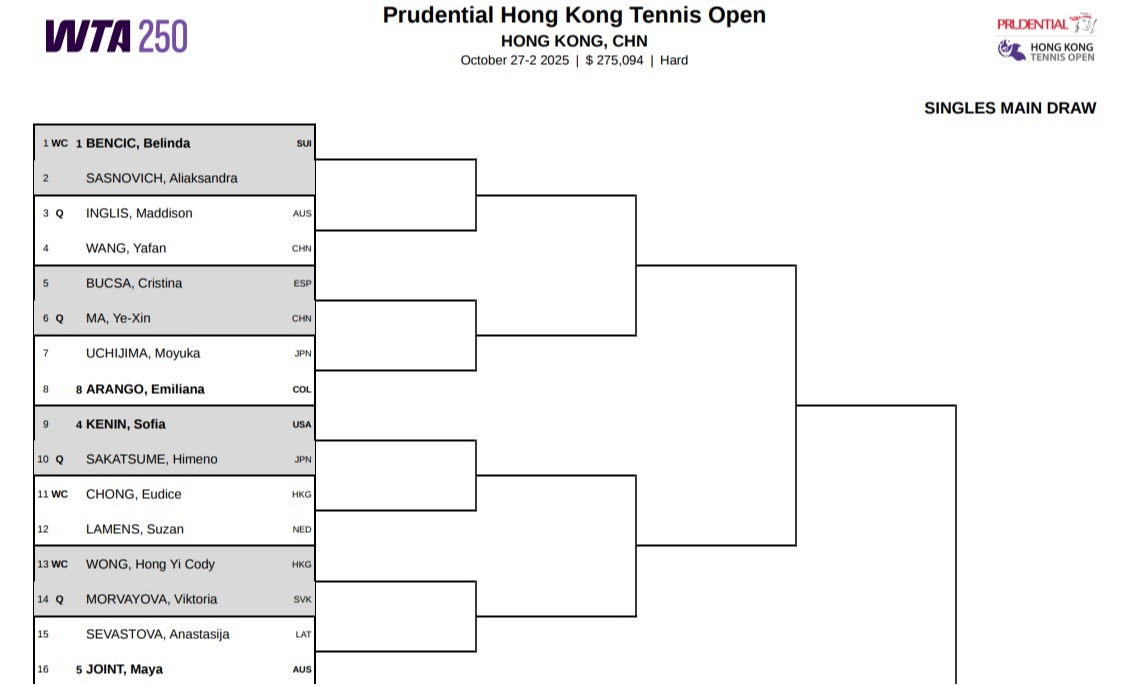 【2025年最新】プルデンシャル・香港テニスオープンのドロー表・放送日程