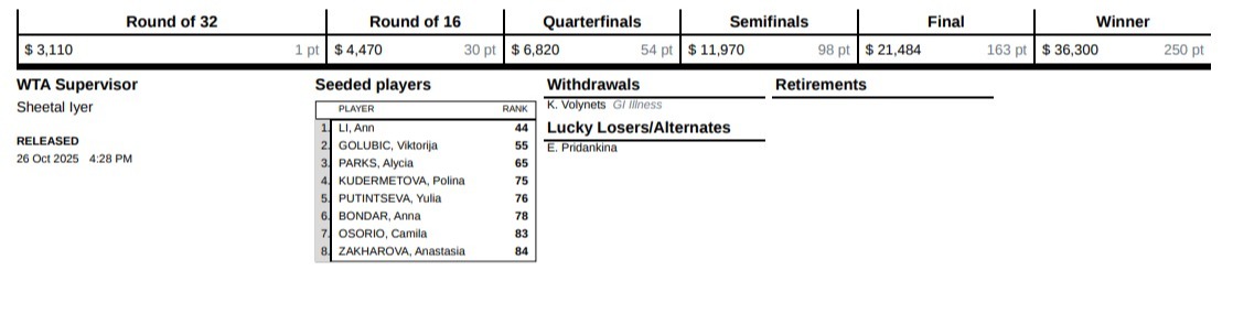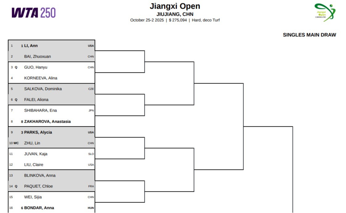 WTAツアーの中で、江西省オープンは、WTA250の大会に含まれます。優勝者には250ポイント、準優勝者には163ポイントが付与されます。