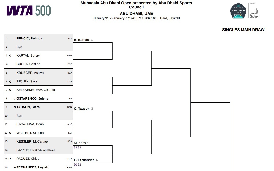 ムバダラ・アブダビ・オープン2026のドロー表