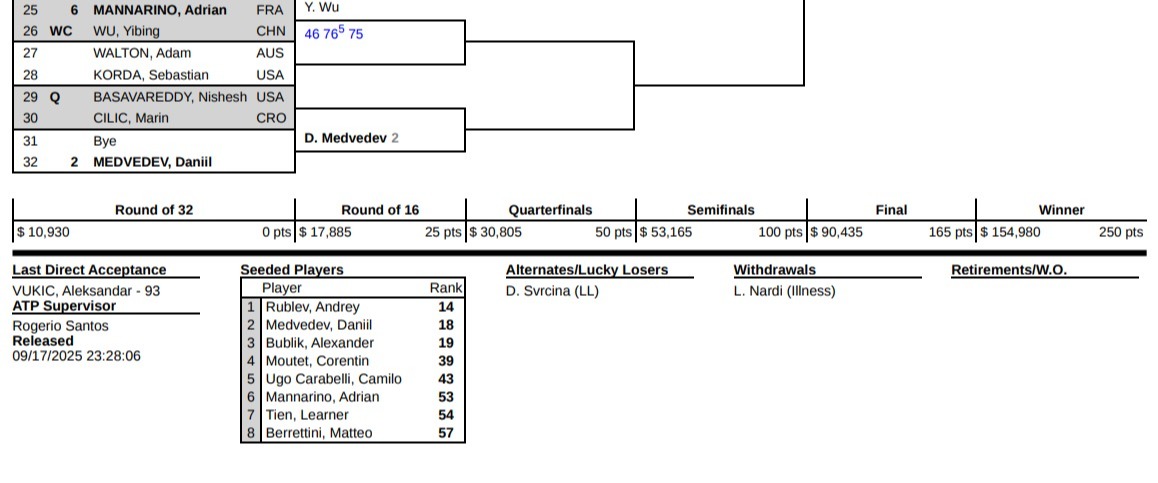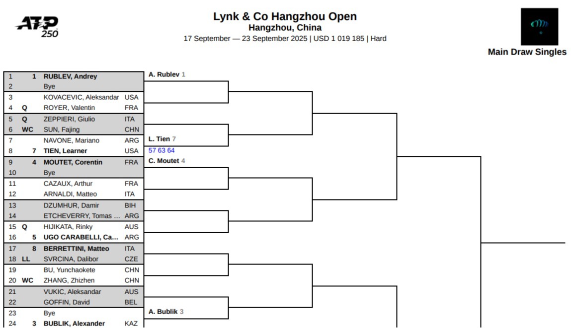 杭州オープン2025のドロー表