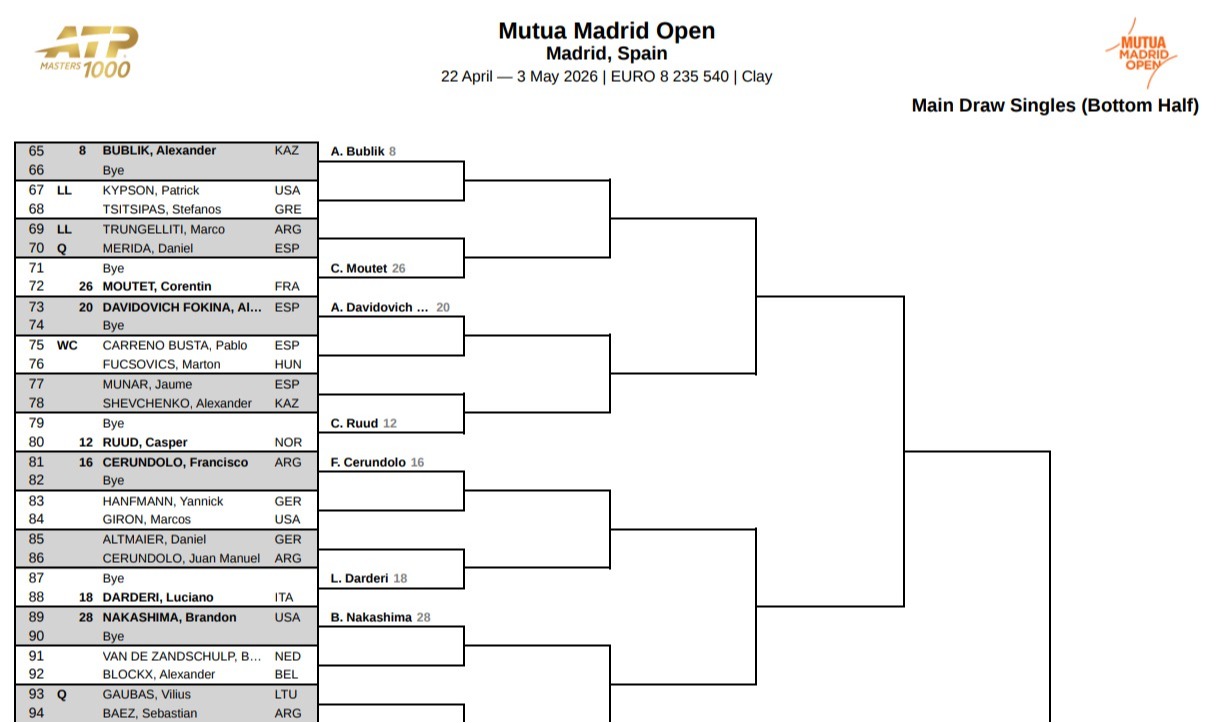【2026年最新】マドリード・オープンのドロー表・放送日程
