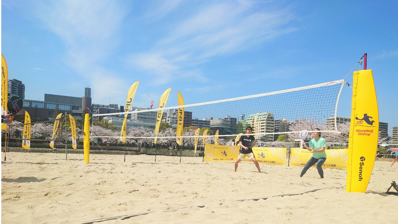 泉南や滋賀で開催することもあります。このビーチテニスは、日本に上陸して20年程になりますが、当初より活動をしている団体で、大阪でも春に桜ノ宮、夏に泉南でツアー大会等を開催しています。