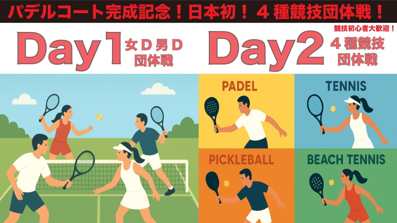 【全国初】「テニス、パデル、ビーチテニス、ピックルボール」の4種混合団体戦を2日目に開催