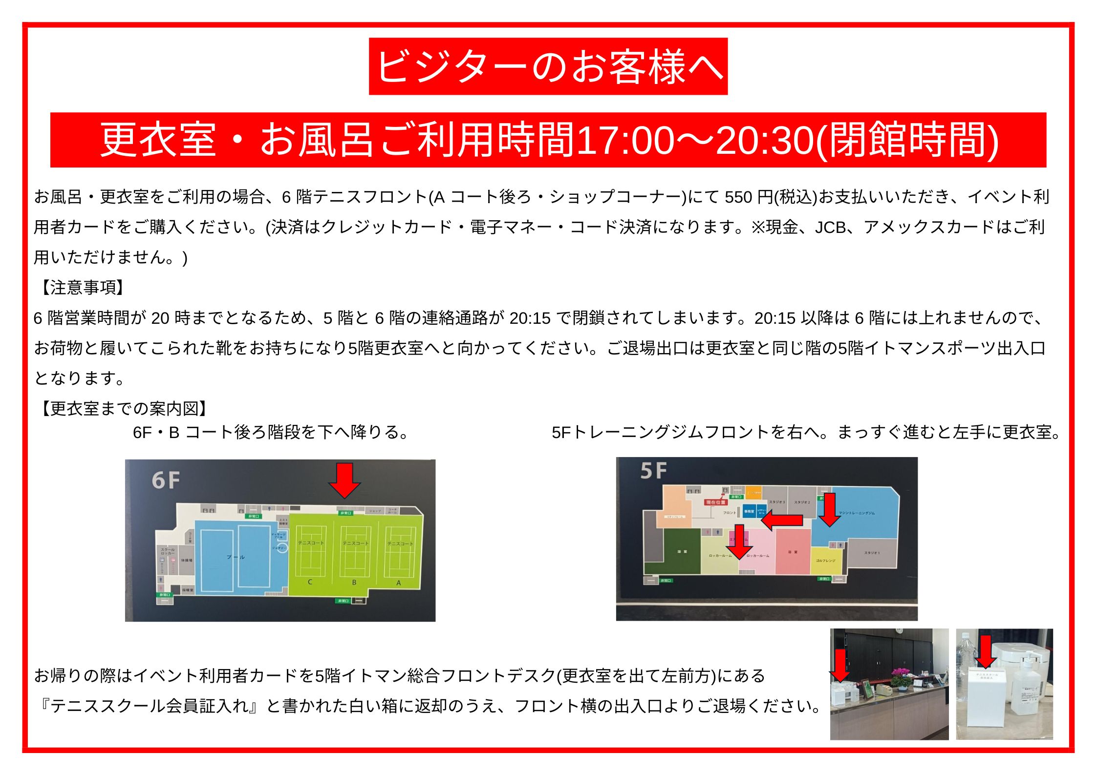※ビジターの方が更衣室・お風呂をご利用の場合、追加で550円(税込)を頂きます。