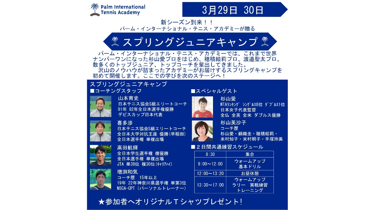 新シーズン到来!! パーム・インターナショナル・テニス・アカデミーが贈るスプリングジュニアキャンプ
