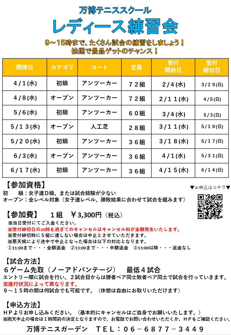 万博テニスガーデン TEL:06-6877-3449