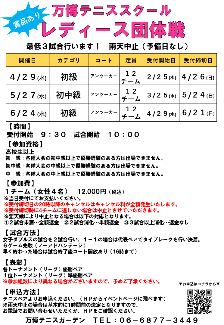 【賞品あり!】女子ダブルス4人団体戦(初中級)