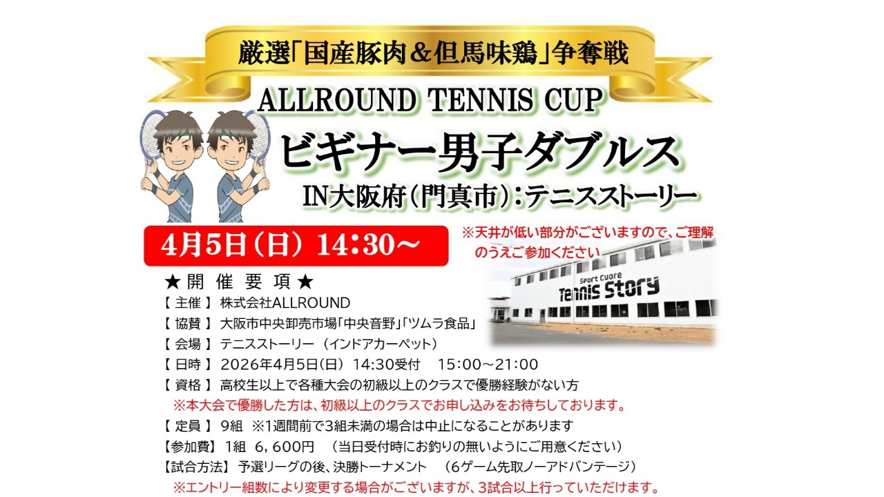 【市場厳選!国産豚肉&但馬味鶏争奪!】ビギナー男子ダブルス大会 門真市:テニスストーリー