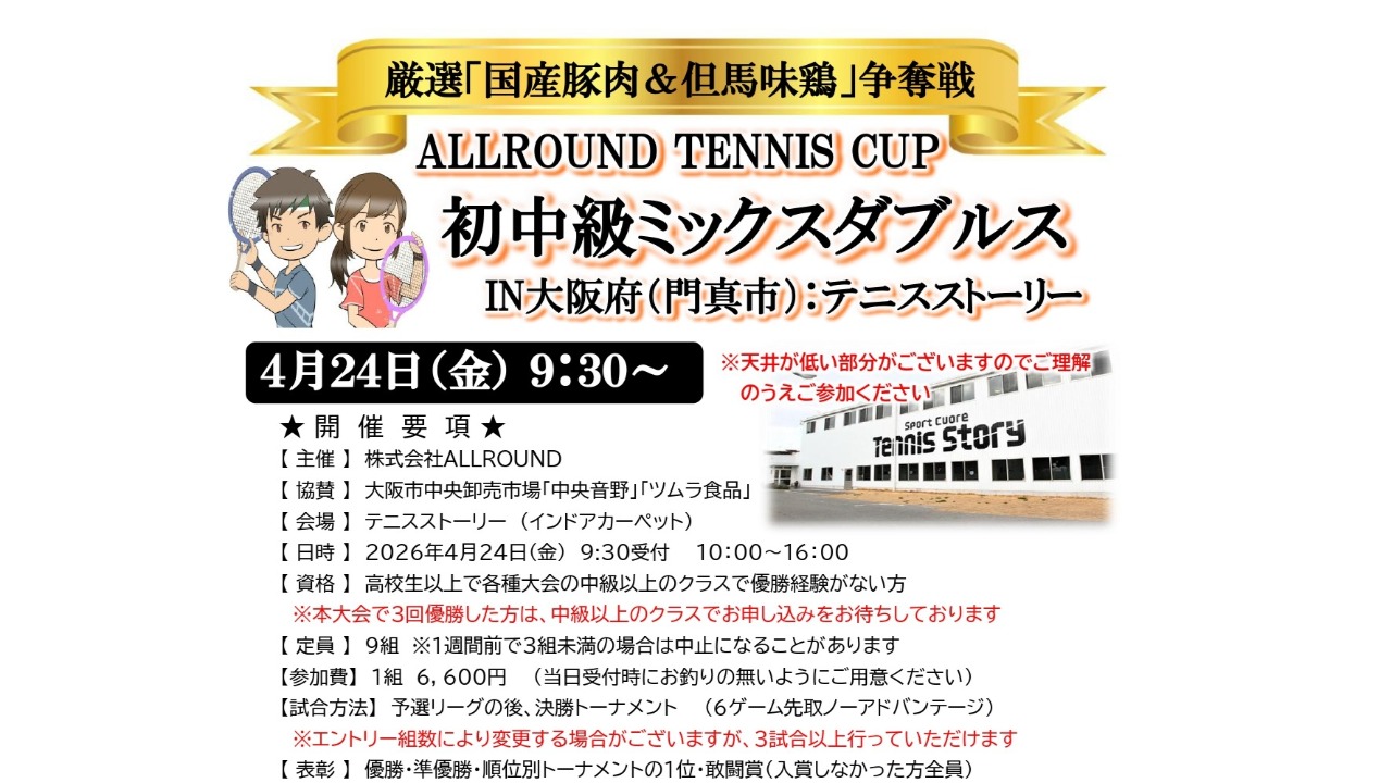 【市場厳選!国産豚肉&但馬味鶏争奪!】初中級ミックスダブルス大会 門真市:テニスストーリー