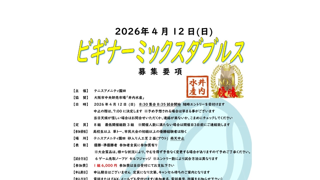 【テニスアメニティ園田】ビギナーミックスダブルス大会