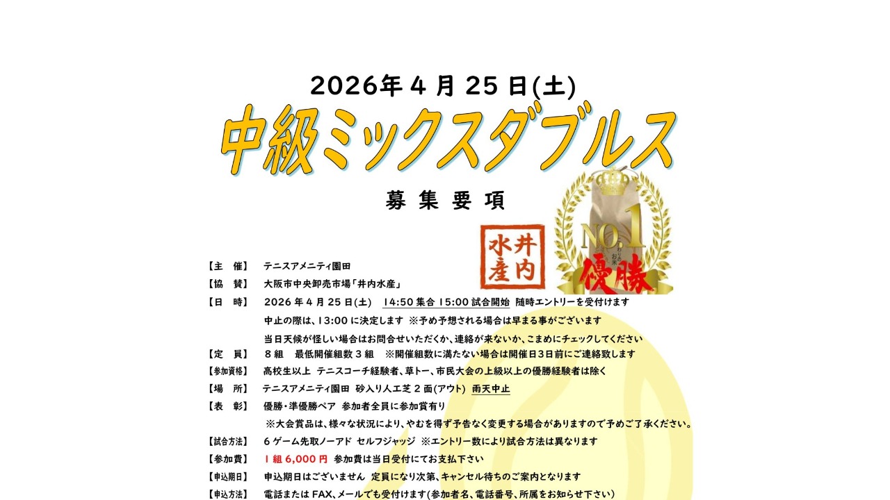 【テニスアメニティ園田】中級ミックスダブルス大会