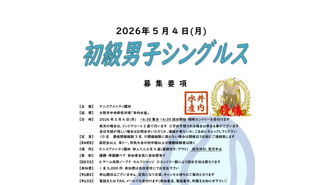 (定員になり次第、キャンセル待ちのご案内になります。なお、 テニスベア以外でも申込みを受け付けておりますので、参加人数の表記が実際と異なることがありますので予めご了承ください。)