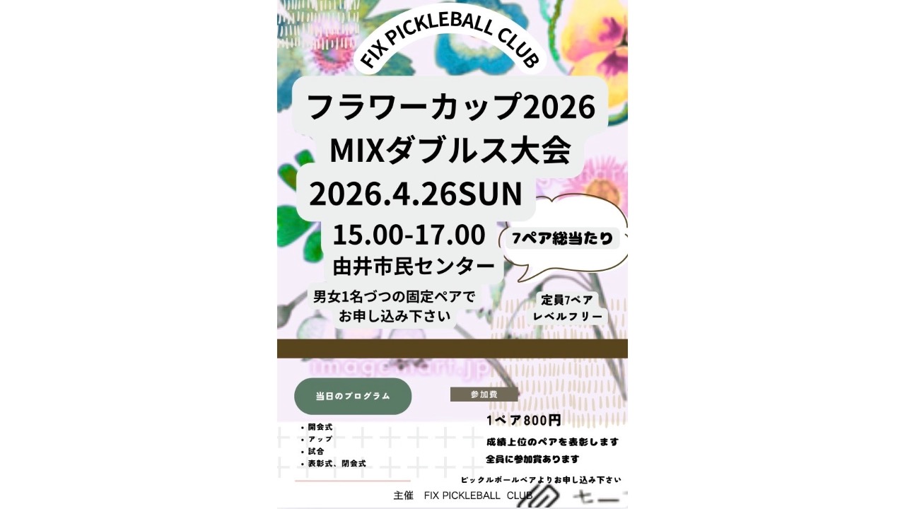 フラワーカップ2026MIXダブルス大会を開催します!