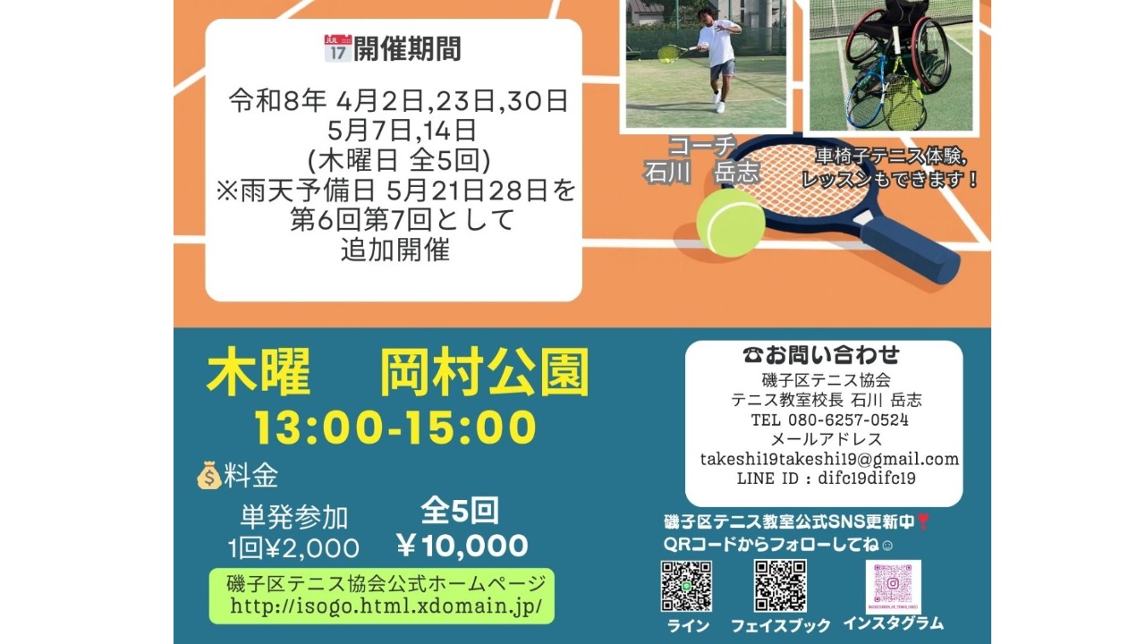 磯子区テニス協会 春のテニススクールin岡村公園🌸🎾1、2番コート