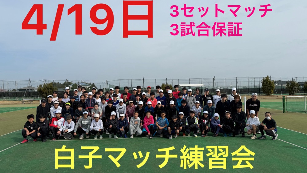 この度、ジュニアマッチ練習会を開催させていただきます。それぞれの年代・レベルにカテゴリー分けをし、各選手1日最低3セット✖️3試合行います。