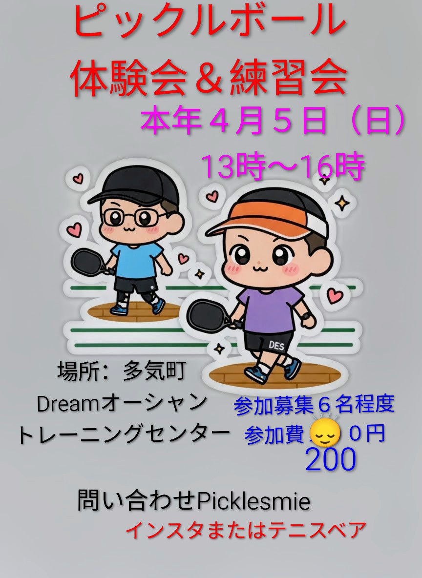 ピックルボールを初めて体験したい方や数回ピックルボール体験した方など募集👍