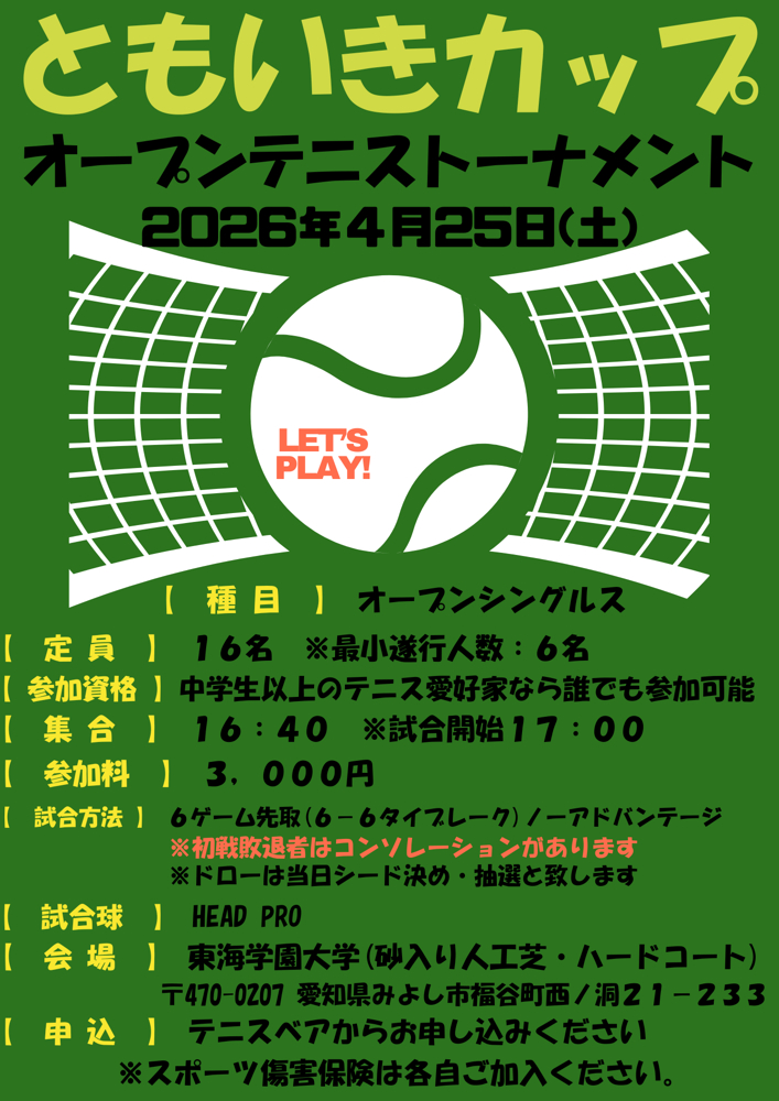 🏆 ともいきカップ オープンシングルス(今回に限りハードコートを使用)