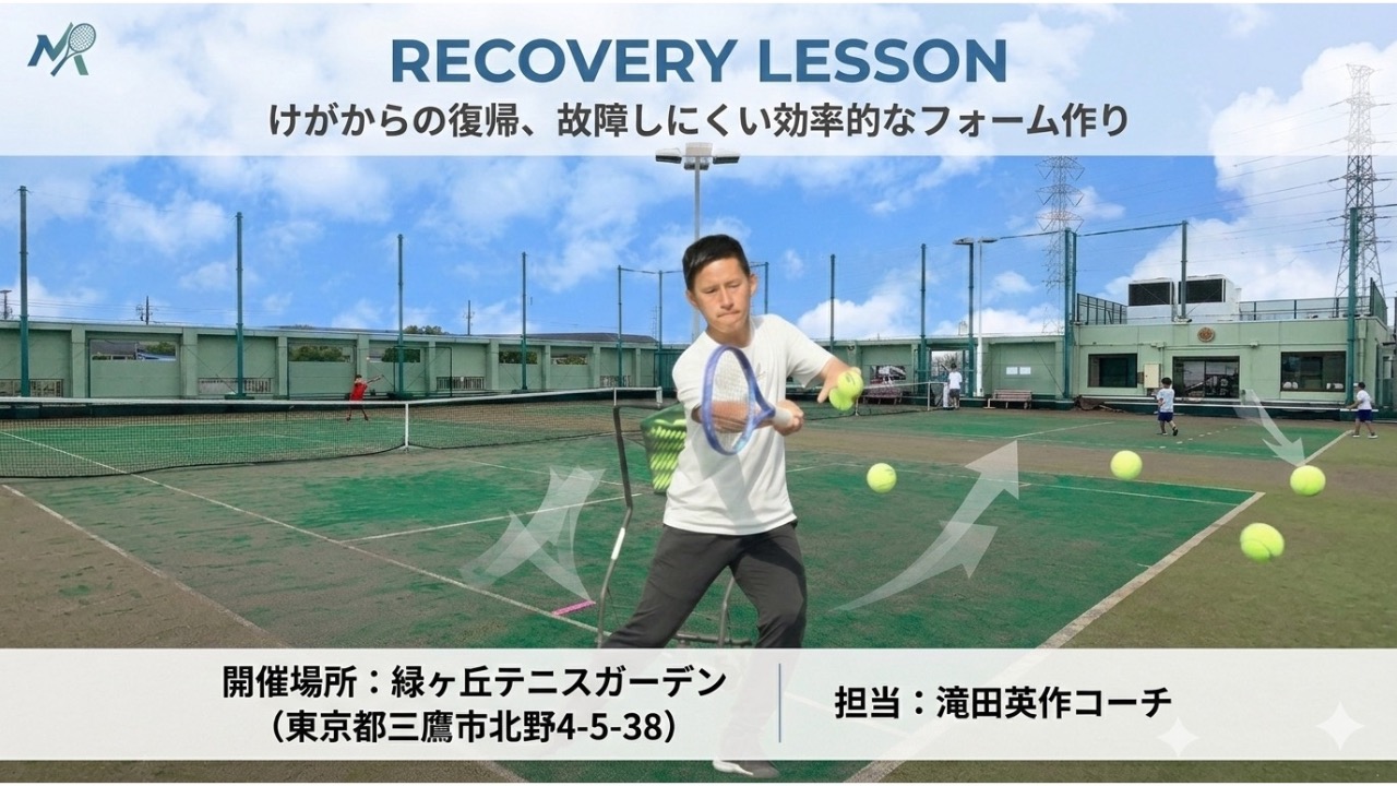【けがからの復帰、故障しにくい効率的なフォーム作り】をテーマに球出しや基本的なラリーが中心の90分のクラスになります。
