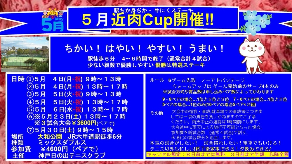 🍖近肉杯🍖4試合4600円(ペアで)5月5日(火・㊗️)大和公園9時〜13時