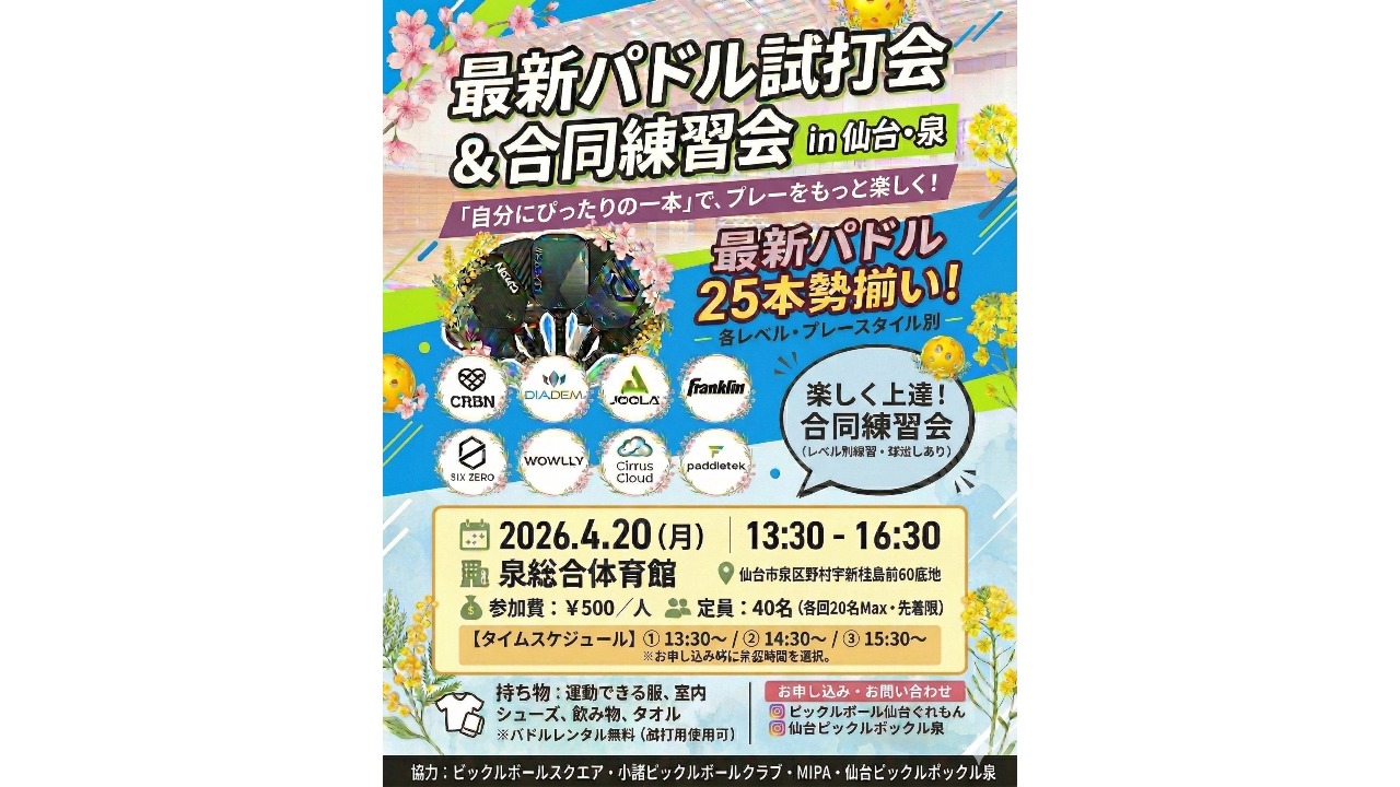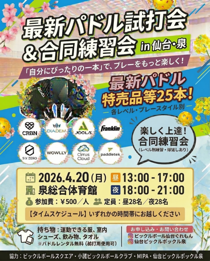 参加基準 :ピックルボール愛好者、興味ある方、パドル購入希望者