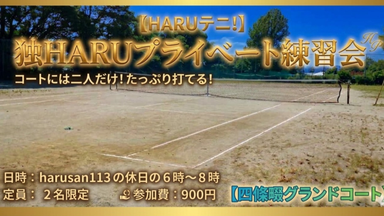 【HARUテニ!】朝6時から2時間たっぷり!独HARUプライベート練習会【四條畷】