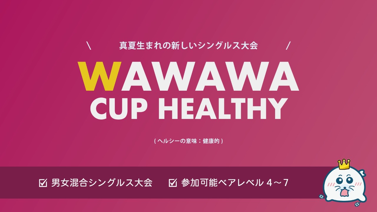 酷暑の中でも集中力と体力を保ってやり切れる、体力に懸念がある方でも熱中症のリスクをほとんど考えなくて良いショートゲーム大会。今後シングルスを頑張っていきたい方へのあしがかりになる大会、それがわわわかっぷへるしー。