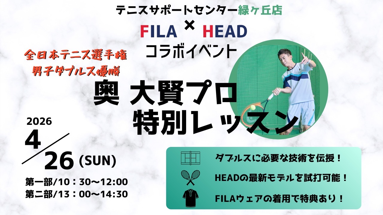 また本イベントは奥プロの契約メーカーであるFILA、HEADとのコラボイベントです!