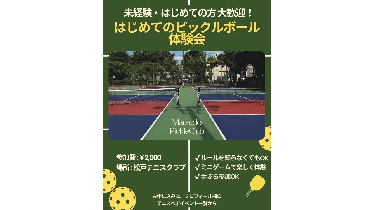 はじめてのピックルボール体験会(未経験者向け) MatsudoPickleClub