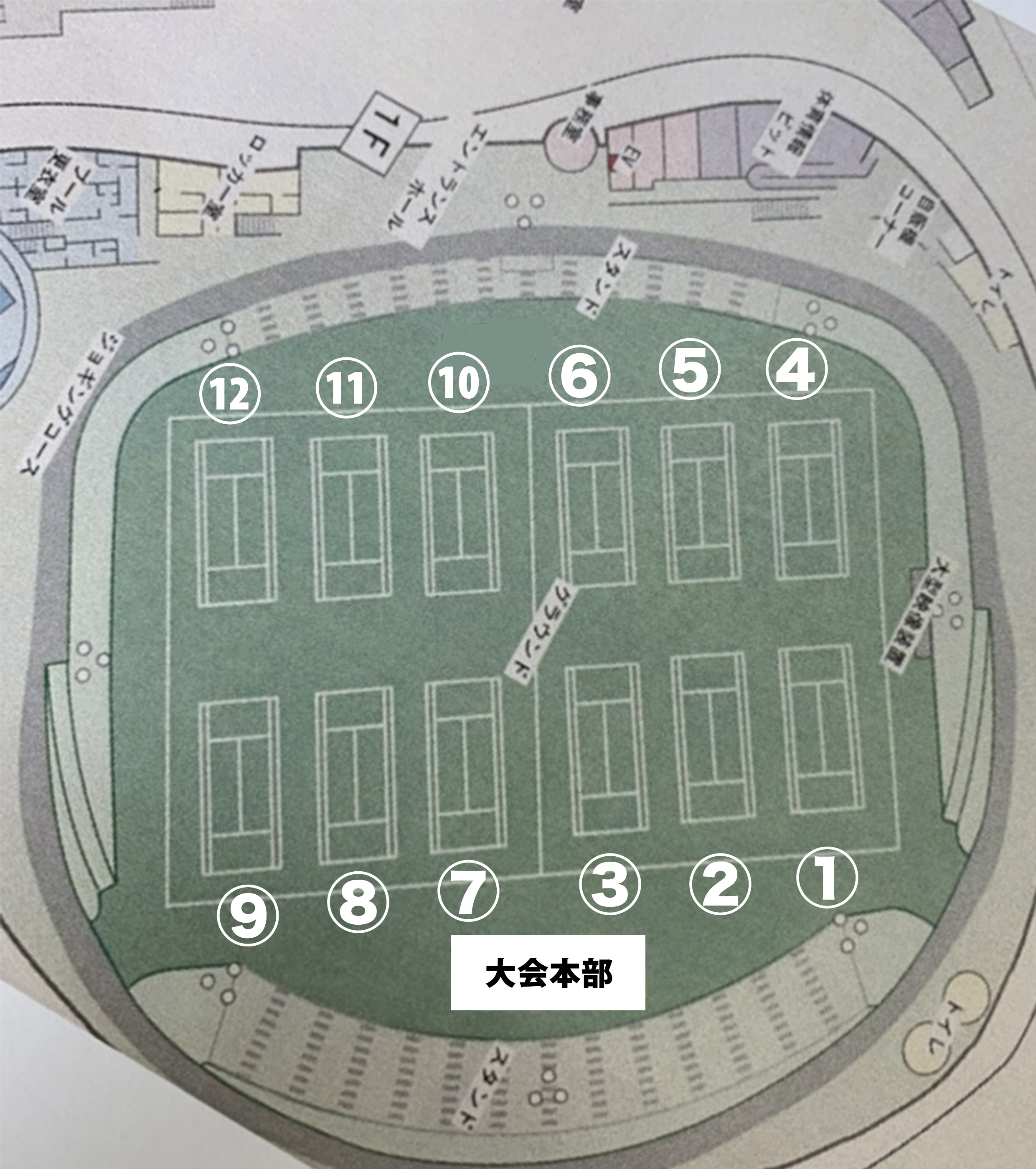 コート:屋内砂入り人工芝コート(12面予定)