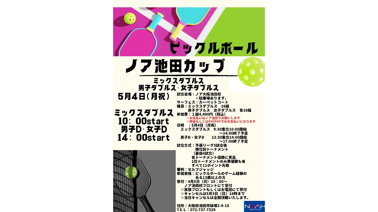 対象:ピックルボールのゲーム経験のある18歳以上の方