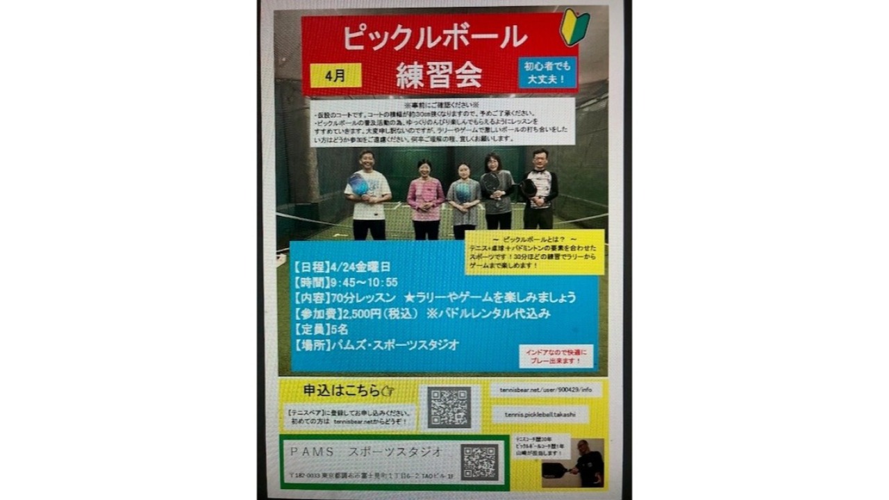 【ピックルボール練習会】in パムズ・スポーツスタジオ
