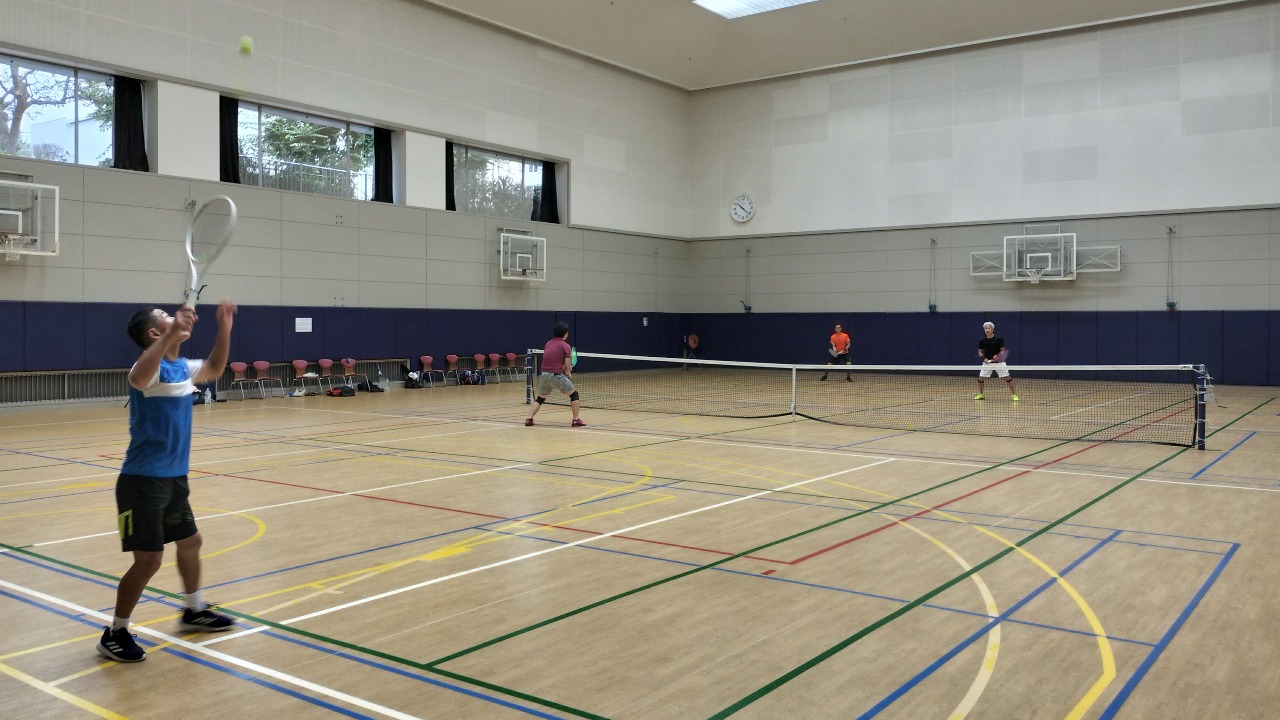 軽いアップ後、合計6人(主催者含む)で4ゲーム消化ノーアド、2-2タイブレ5p先取、2ゲーム毎コートチェンジを時間まで回していきます。