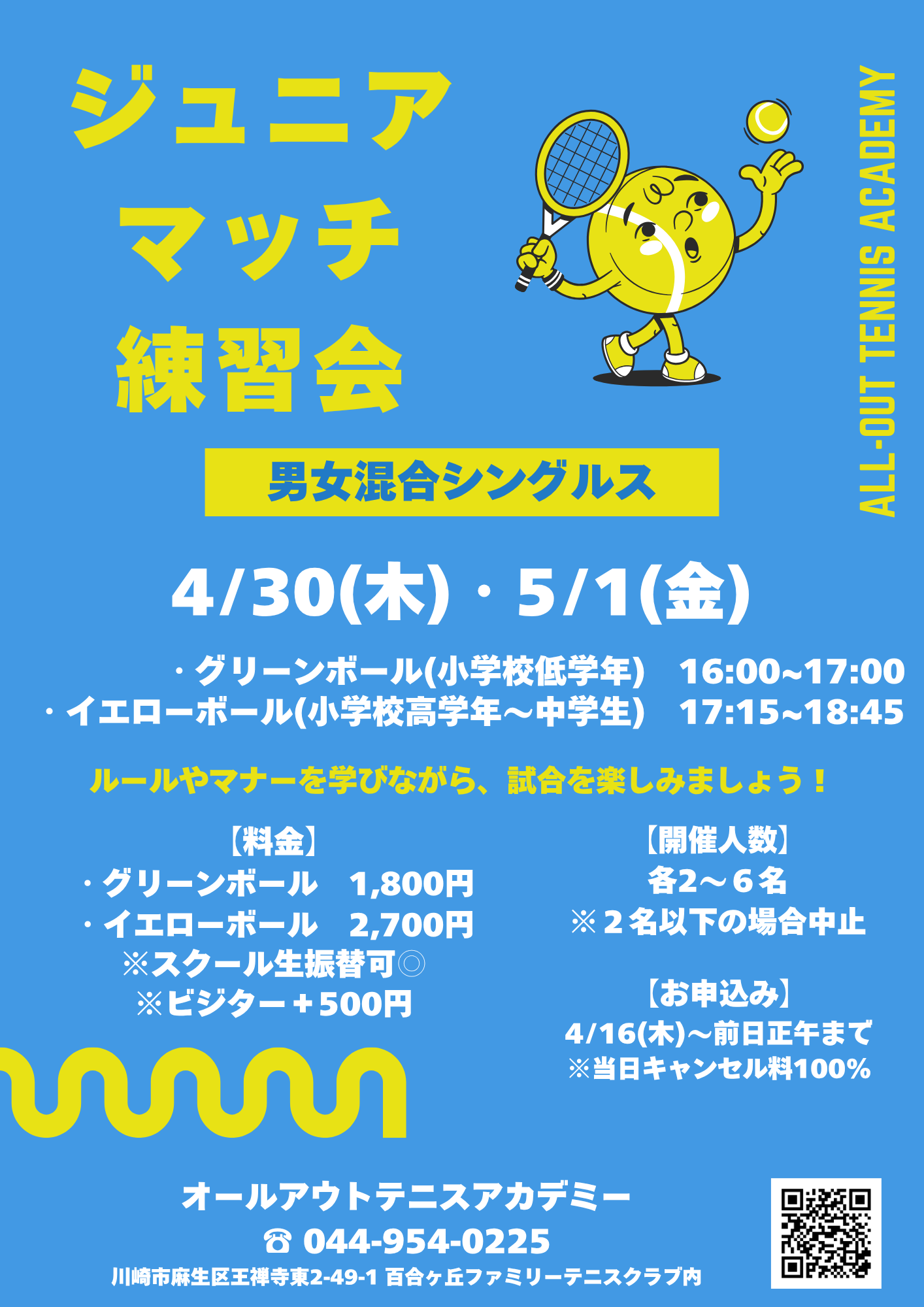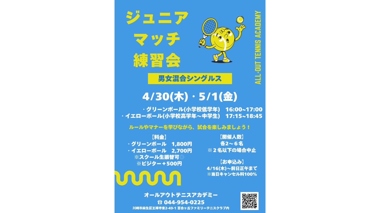 ※テニスクラブのスクール生も参加する可能性があります。