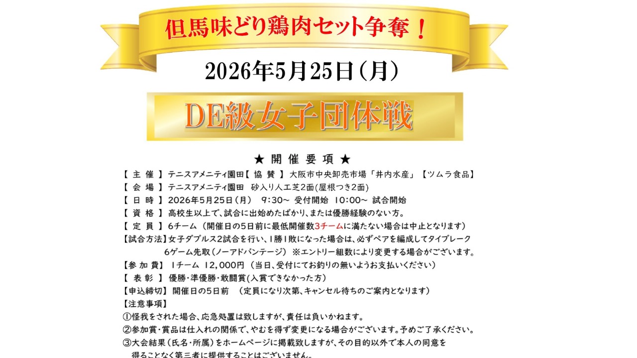 【市場直送!ブランド但馬味どり鶏肉セット争奪!】 DE級女子団体戦 テニスアメニティ園田