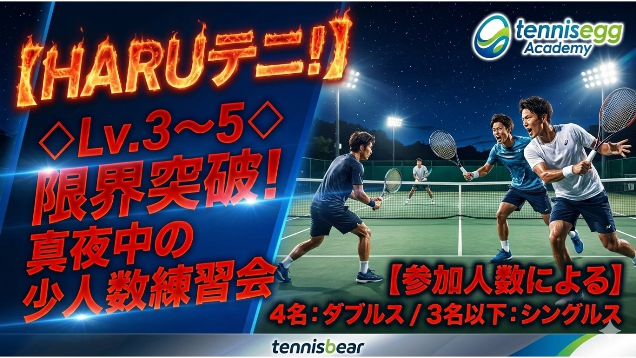 【HARUテニ!】◇Lv.3~5◇限界突破!真夜中の少人数練習会【tenniseggアカデミー】