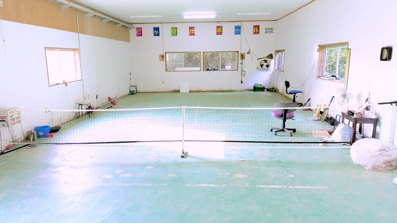 ピックルボール室内コート、フルコートですが横の余白が狭いです。