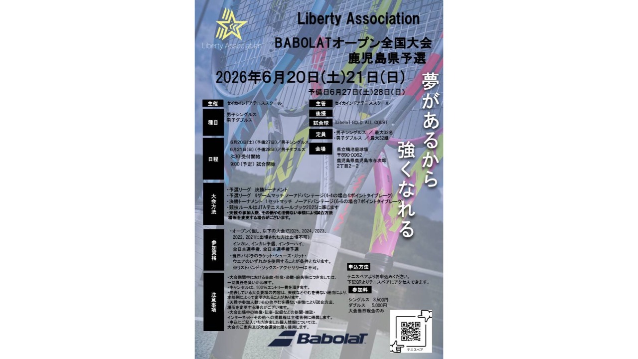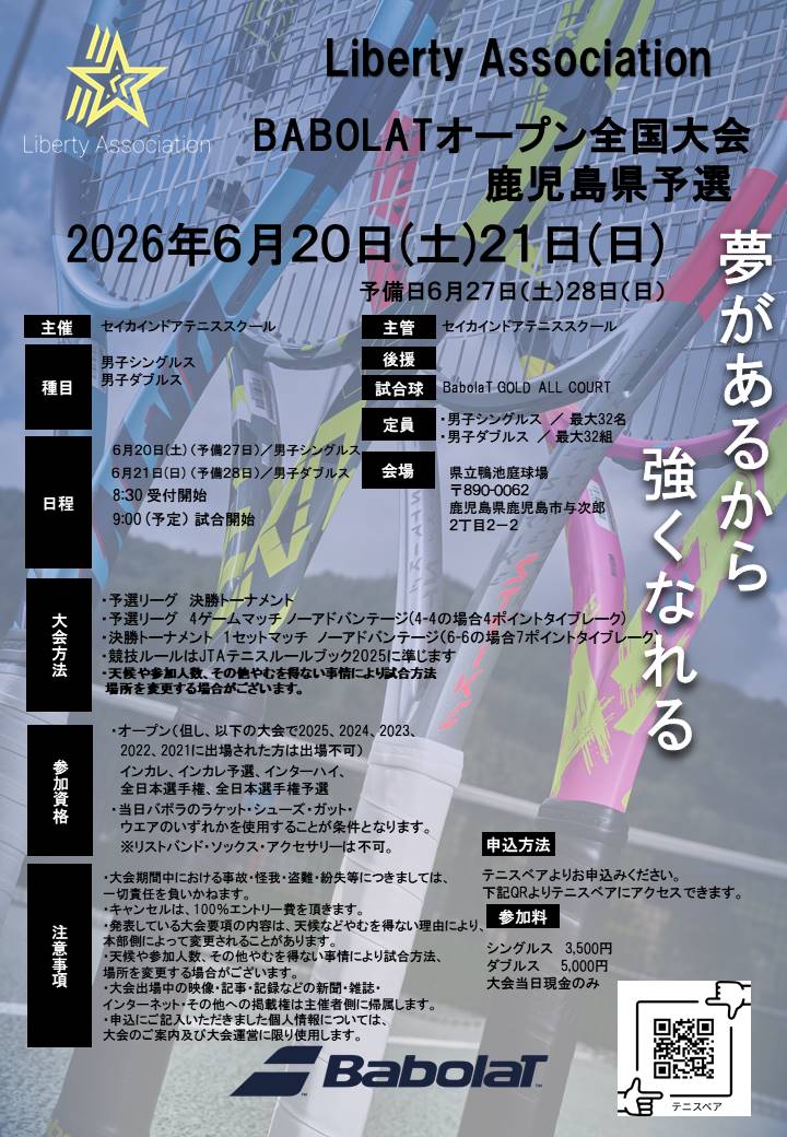 毎年恒例のバボラオープン全国大会の鹿児島県予選を行います。