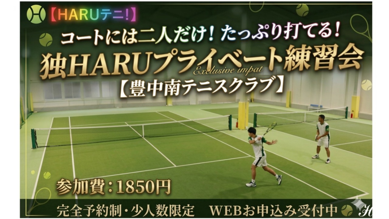 【HARUテニ!】◇3~5◇たっぷり打てる!独HARUプライベート練習会【豊中南テニスクラブ】