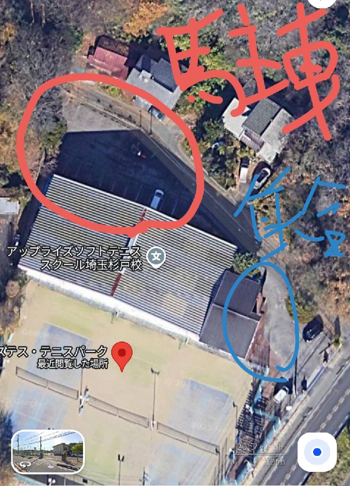 ・手前の駐車場はスクール生限定となっているため、赤丸の方に車を停めていただくようにお願いします。(添付写真参照、字が汚くて申し訳ありません。)