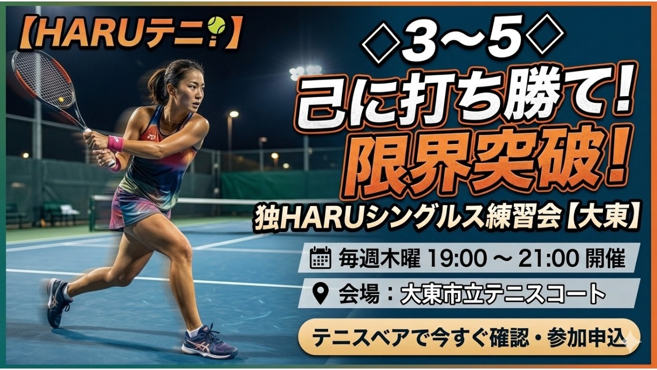 【HARUテニ!】◇3~5◇己に打ち勝て!限界突破!独HARUシングルス練習会【大東】